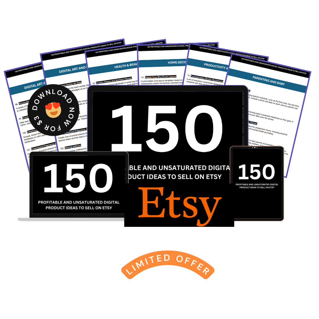 In this blueprint, I reveal the best 150 unsaturated and profitable digital product ideas you can create and sell on Etsy.
